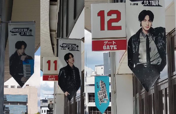 到着したドームは、人、人、人!何がどこにあるのかも分からず、ただ人の波に流されていました。BTSのライブは初めてで、全てが手探り状態。ARMY友もいない私は、心細さでいっぱいでした。そんな中でドームの外周にぐるっと飾ってあるJINくんのフラッグはテンションを上げてくれ私にパワーをくれました。