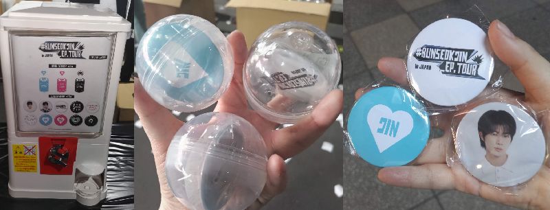 1時間ほど並んだ頃、スタッフの「ここより後ろは売り切れる可能性があります」というアナウンスを聞き、ギリギリで間に合ったことを知りました。お目当ての缶バッジは3つで我慢しました。このツアーの大切な記念になりました。10種類中3種、かぶり無し。
